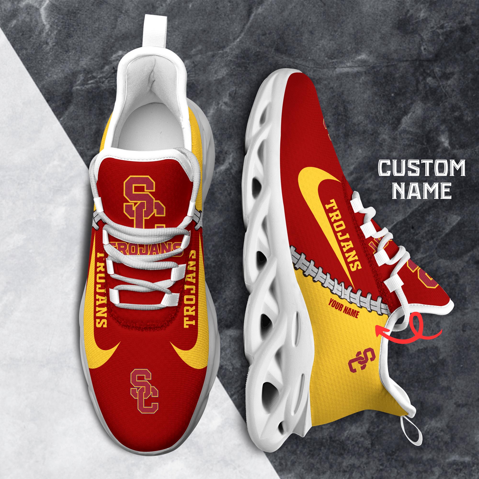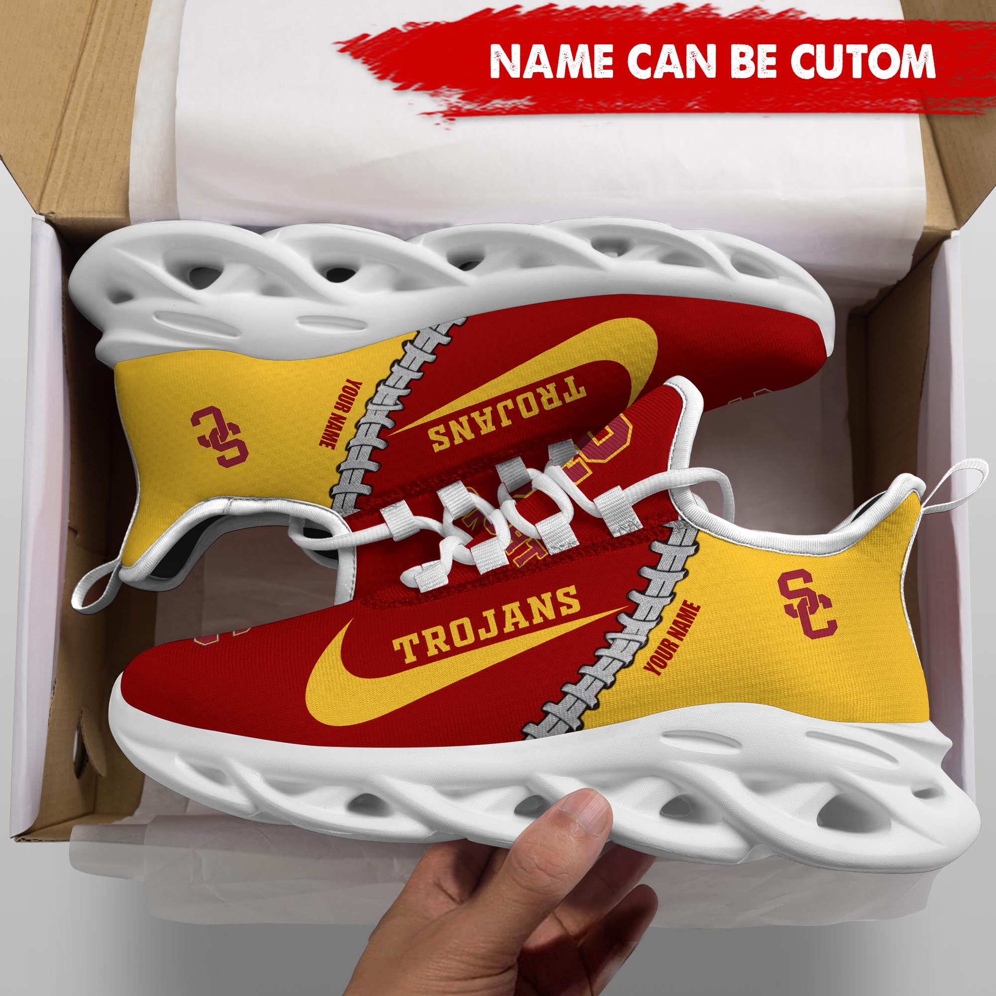 USC Trojans Max Soul Shoes Sneakers Printed White And Black Sole For Men And Women