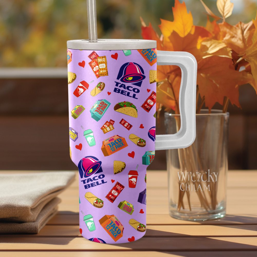 Valentine Taco Bell Custom Stanley Quencher 40Oz Stainless Steel Tumbler With Handle