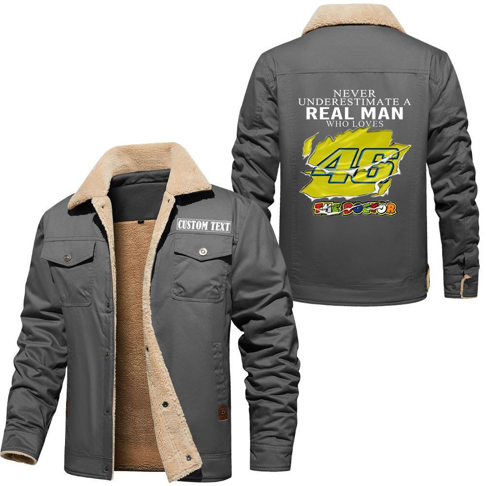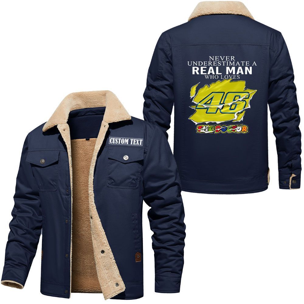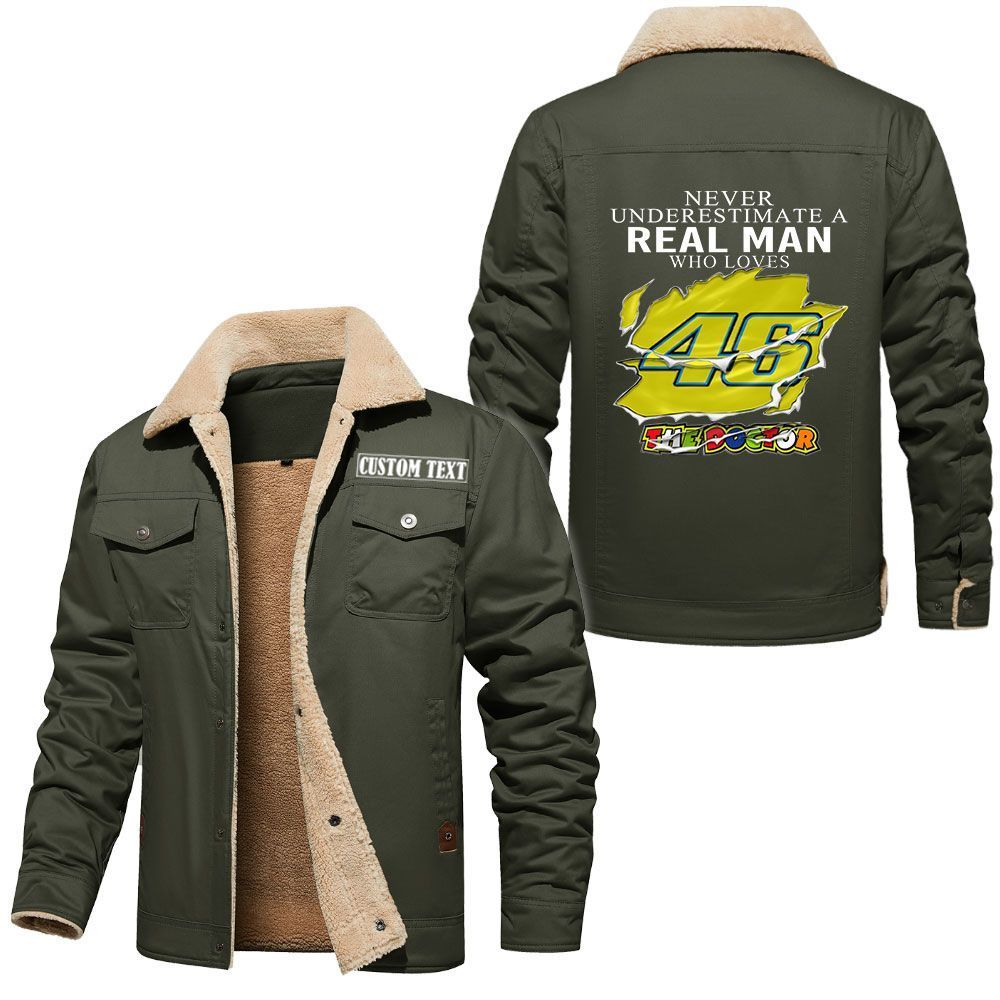 Valentino Rossi 46 Logo Custom Name Cargo Fleece Lined Cotton Jacket A Real Man Who Loves Personalized Outerwear
