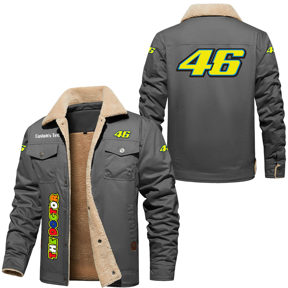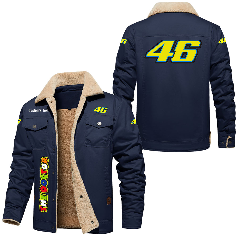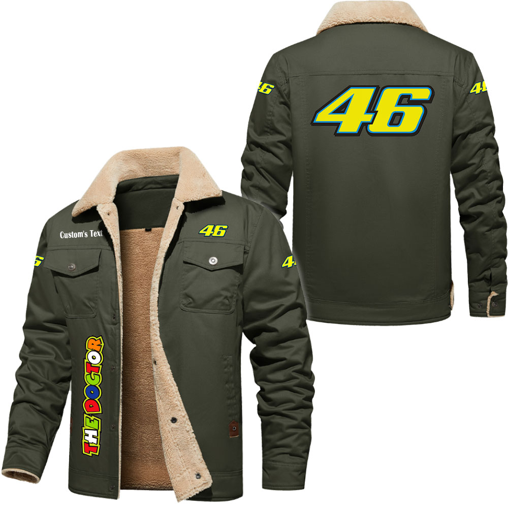 Valentino Rossi 46 Logo Custom Text Cargo Fleece Lined Cotton Jacket