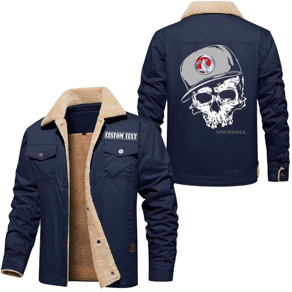 Vauxhall Astra Logo Custom Name Cargo Fleece Lined Cotton Jacket Personalized Outerwear with Skull Design