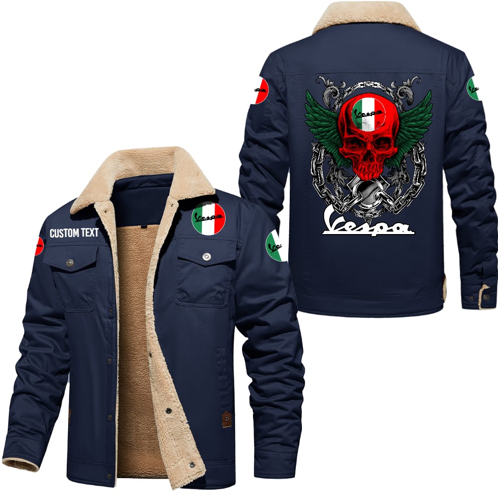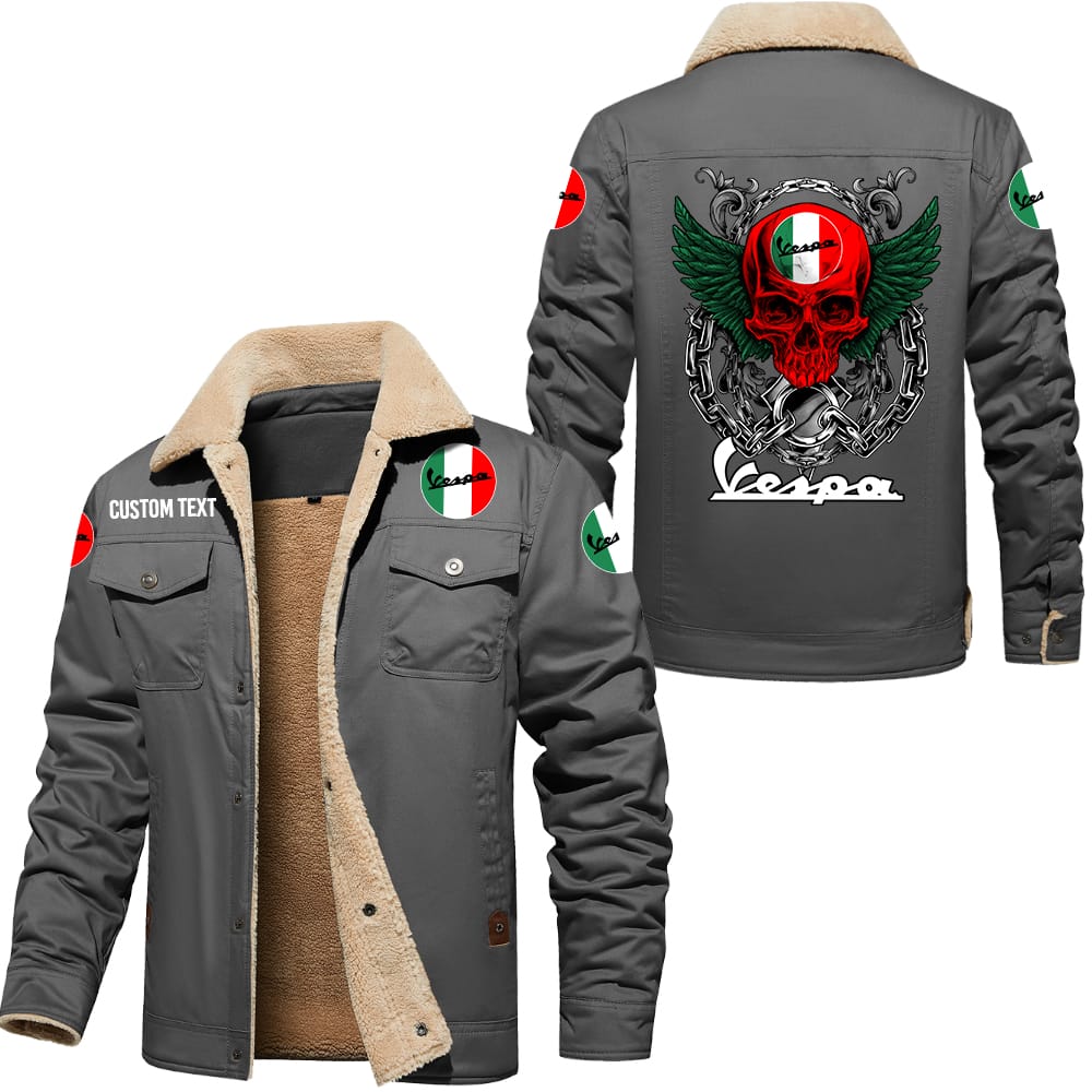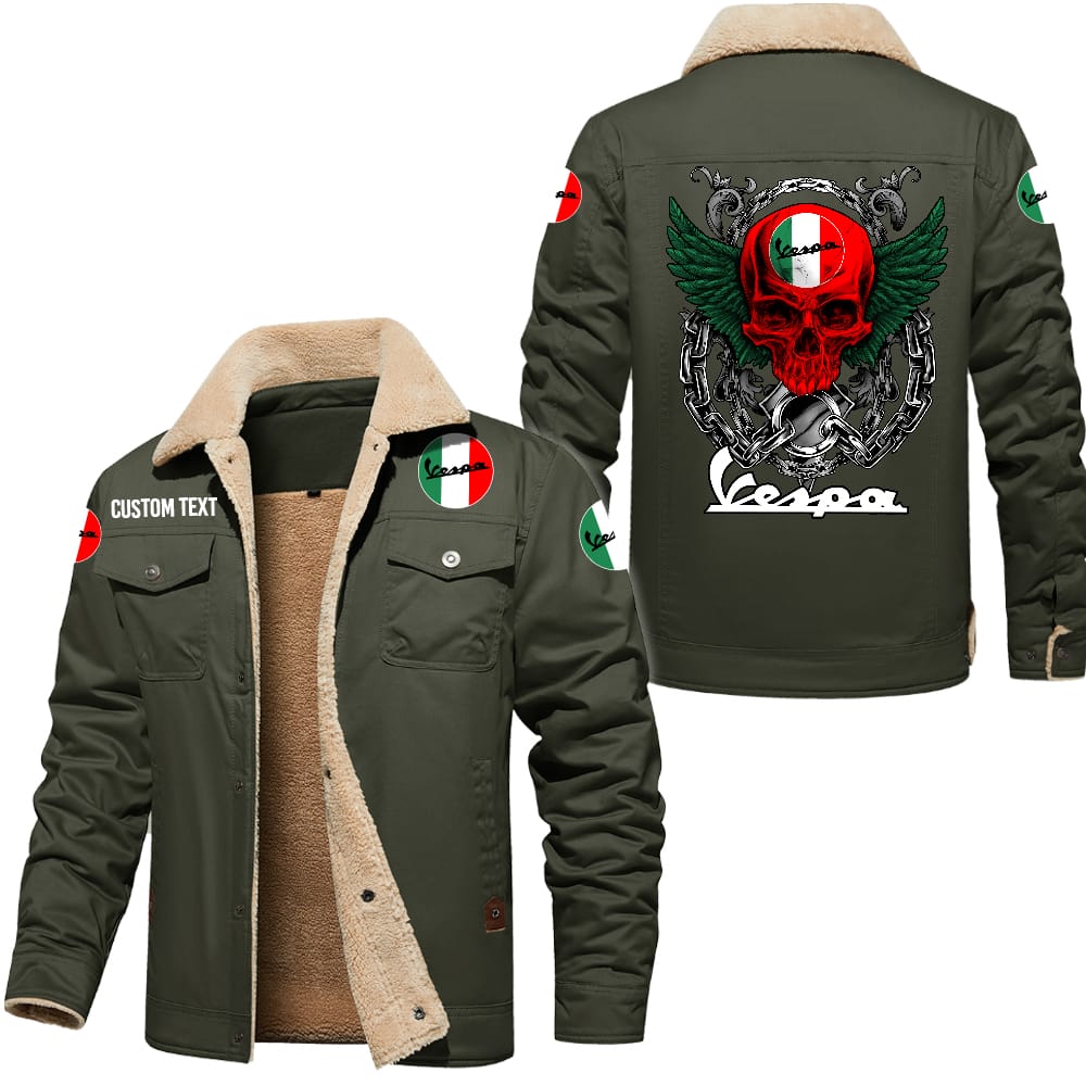 Vespa Custom Name Skull Design Cargo Fleece Lined Cotton Jacket