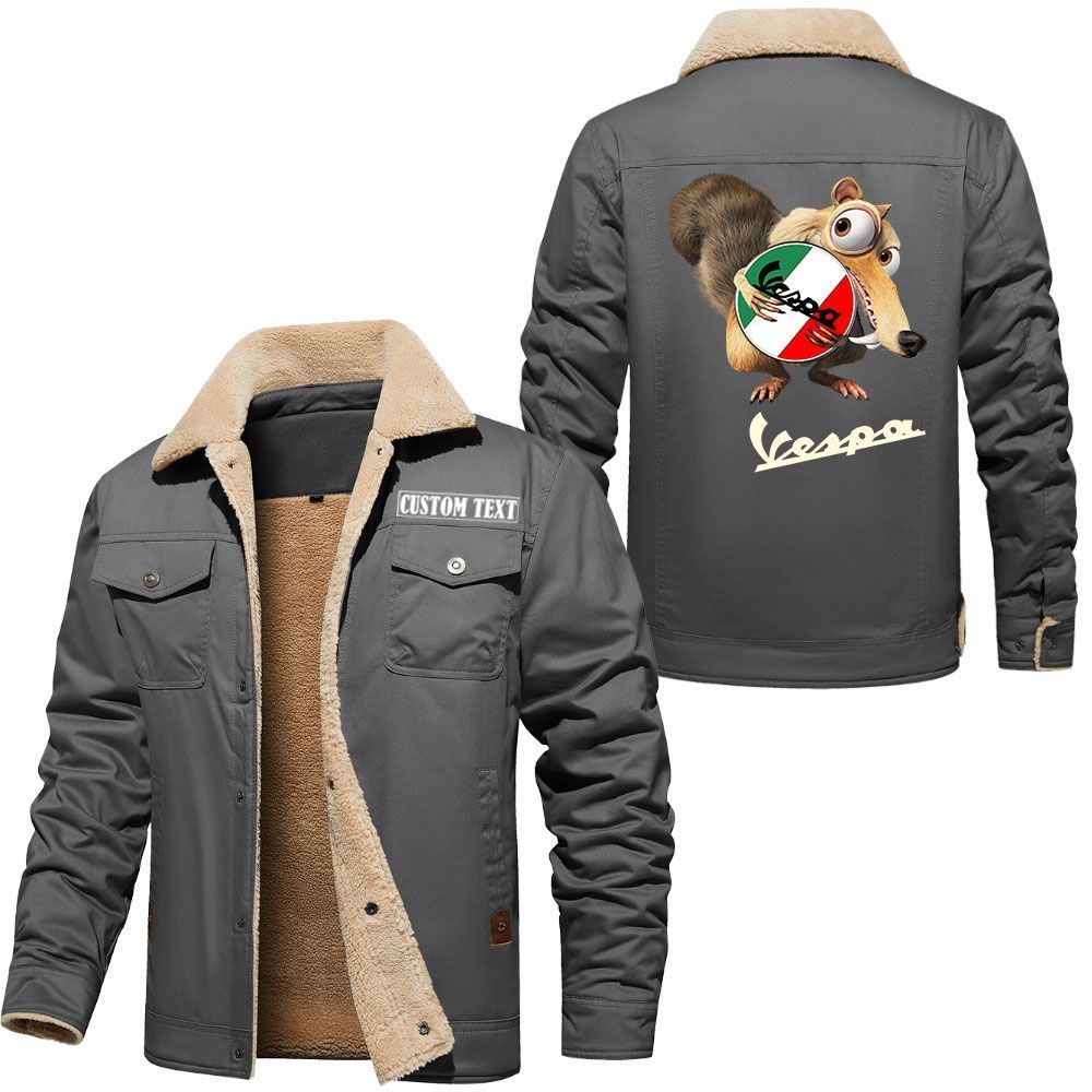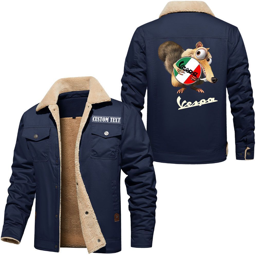 Vespa Logo Custom Name Cargo Fleece Lined Cotton Jacket Scrat Ice Age Design Personalized Outerwear