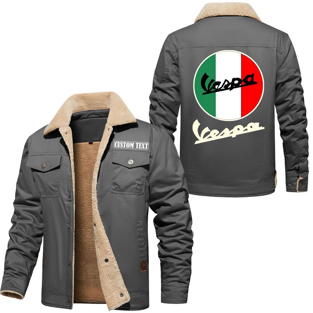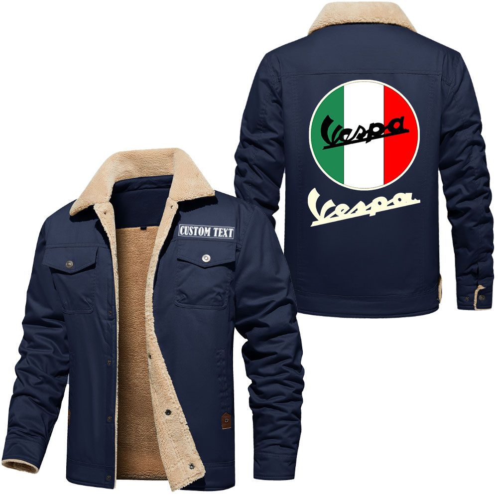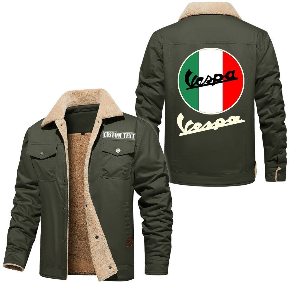 Vespa Logo Custom Name Cargo Fleece Lined Cotton Jacket Stylish Warm Personalized Outerwear