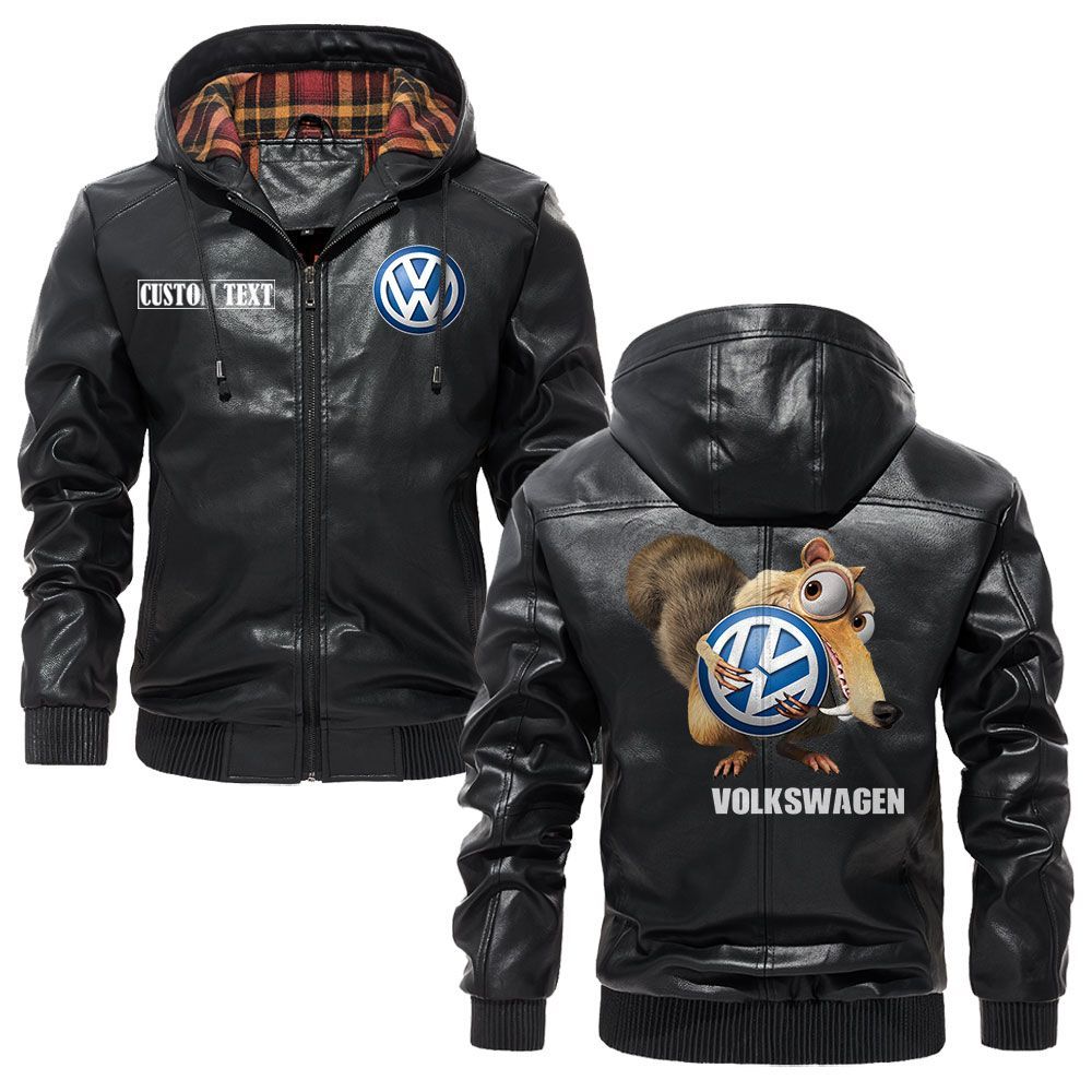 Vespa Logo Custom Name Leather Hoodie Jacket Warm Outerwear with Ice Age Theme
