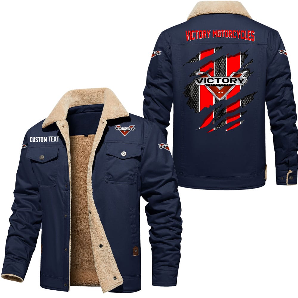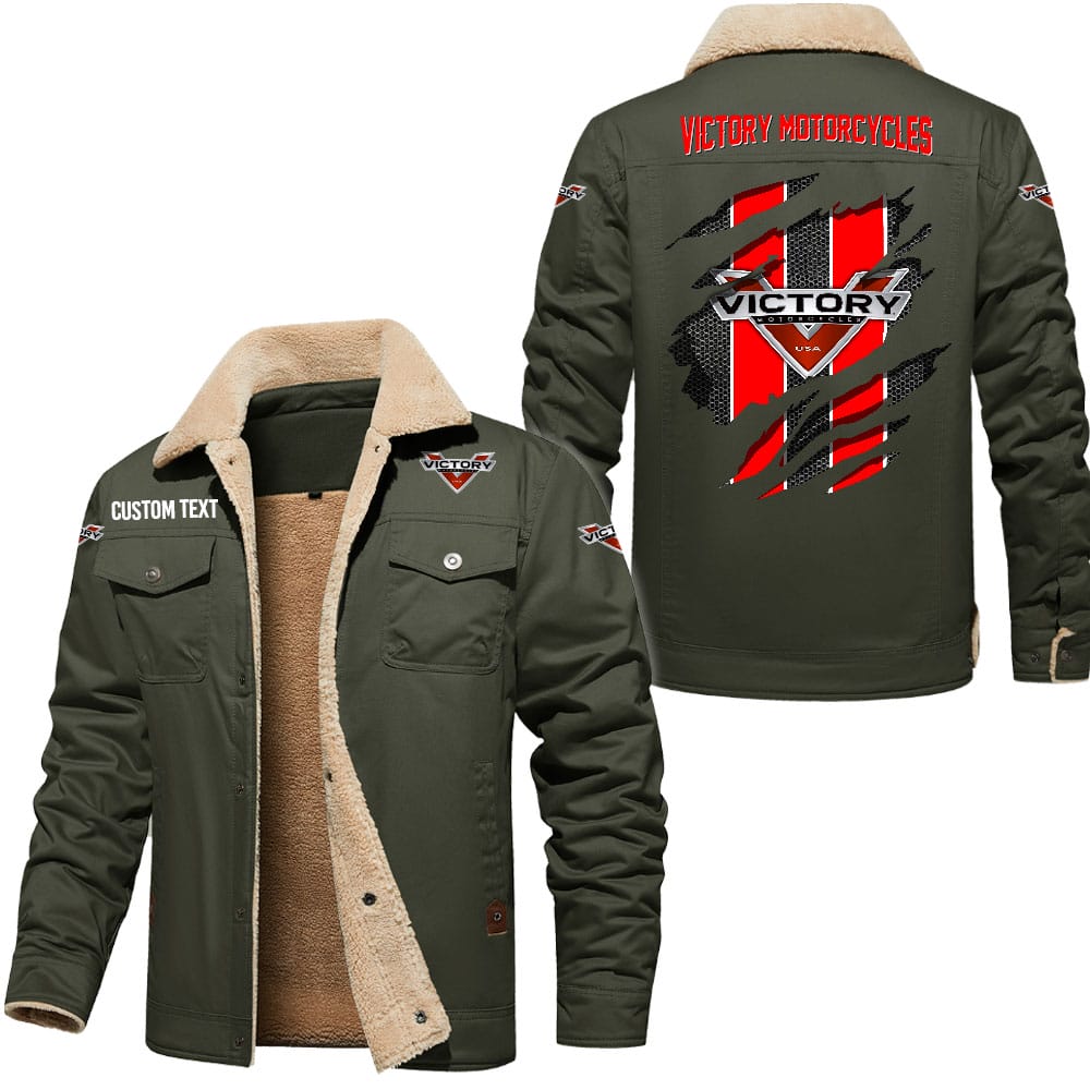 Victory Motorcycles Logo Custom Name Cargo Fleece Lined Cotton Jacket