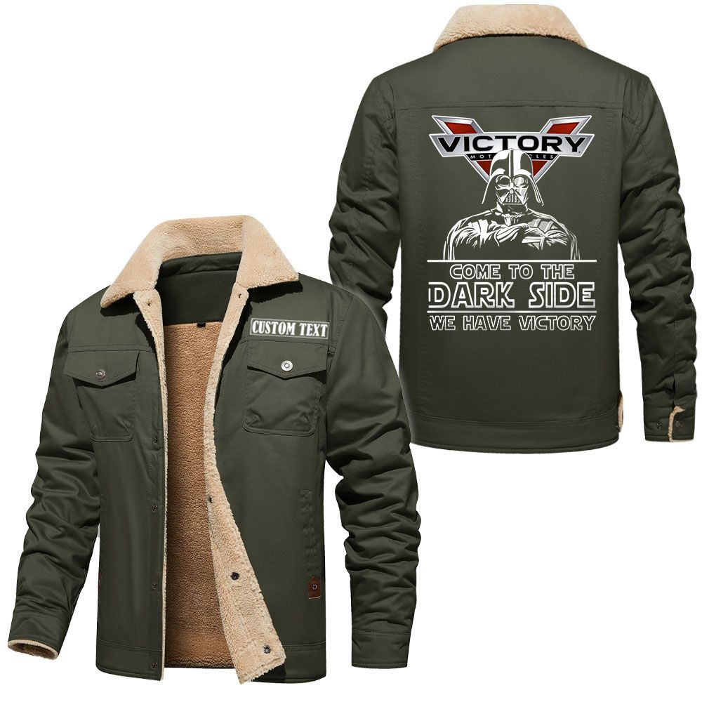 Victory Motorcycles Logo Custom Name Cargo Fleece Lined Cotton Jacket Personalized Outerwear with Dark Side Star Wars Design