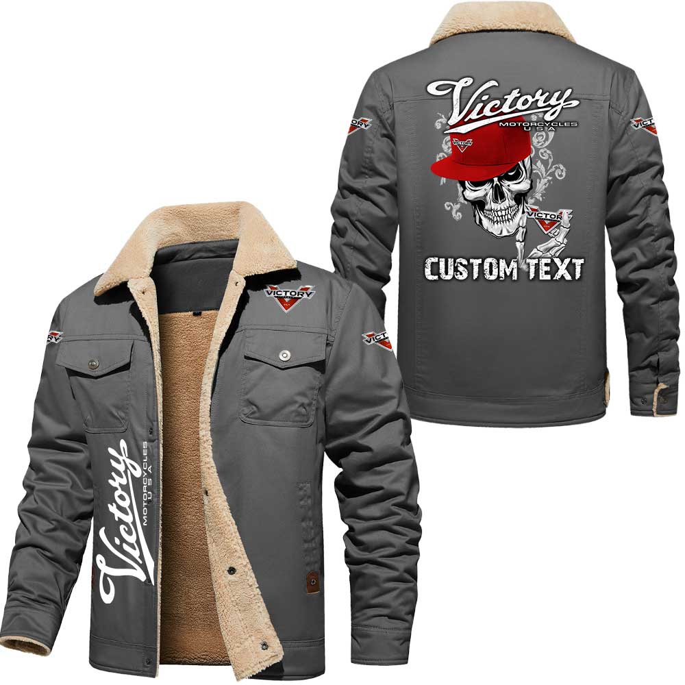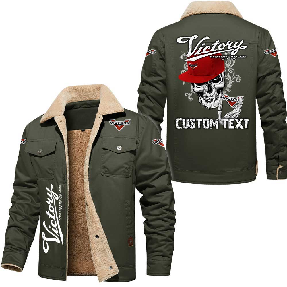 Victory Motorcycles USA Skull Custom Name Cargo Fleece Lined Cotton Jacket