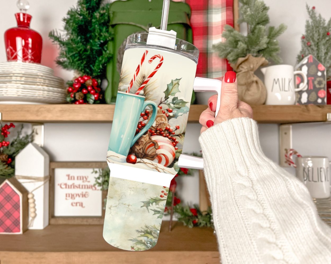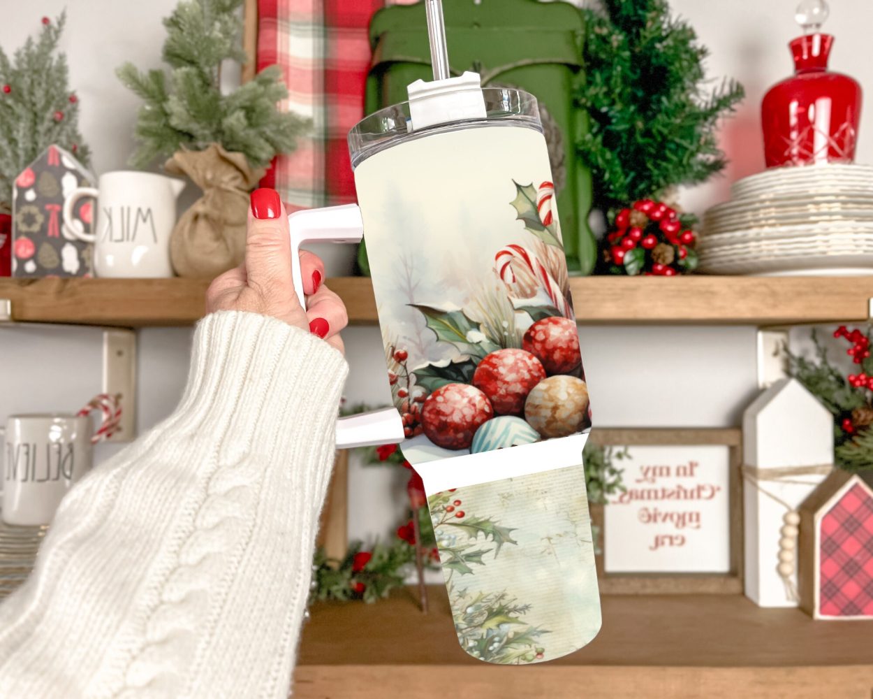 Vintage Holly Christmas Custom Stanley Quencher 40Oz Stainless Steel Tumbler With Handle