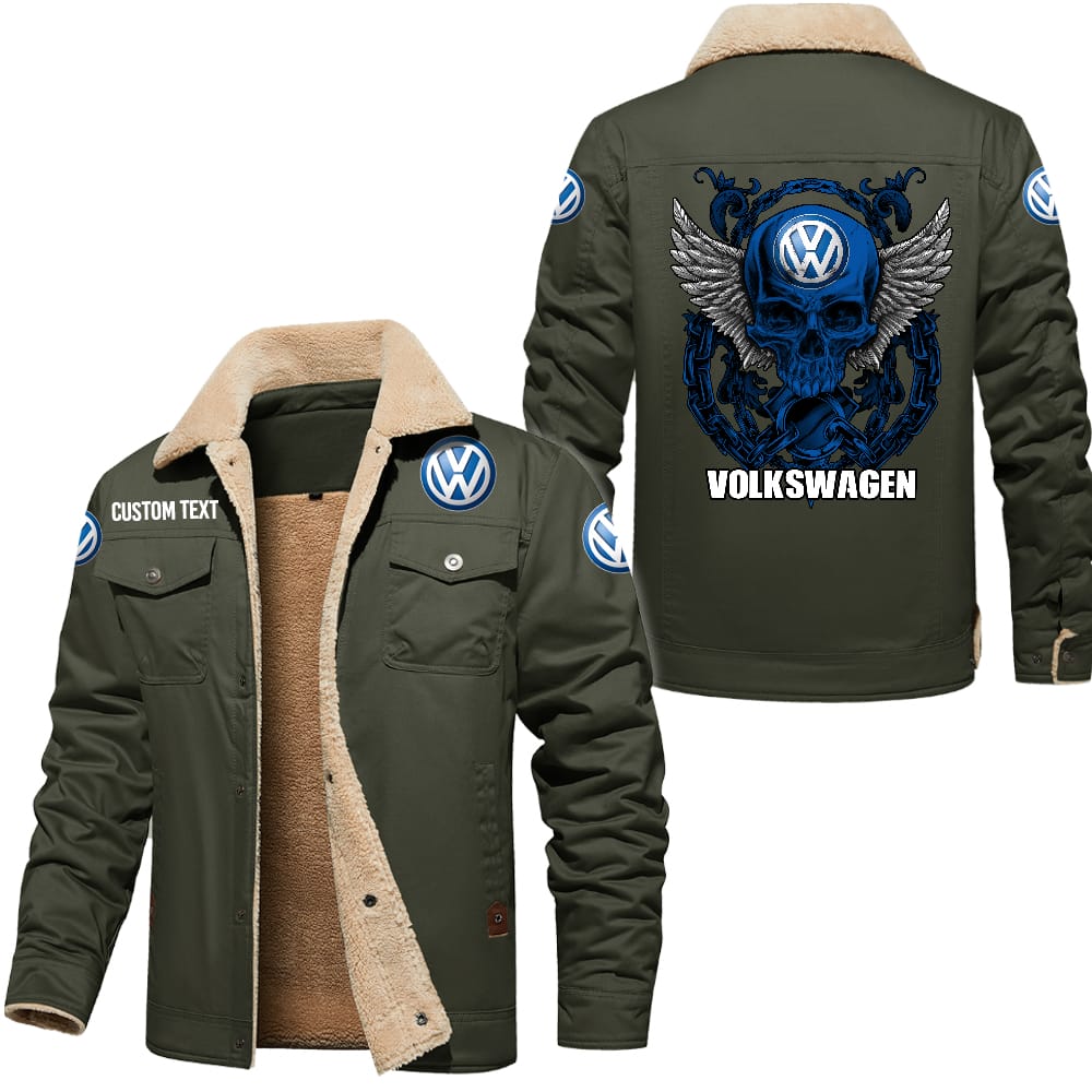Volkswagen Custom Name Skull Design Cargo Fleece Lined Cotton Jacket