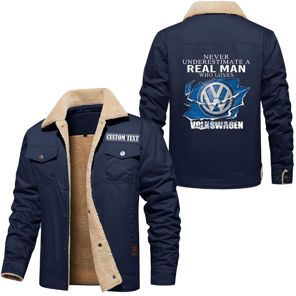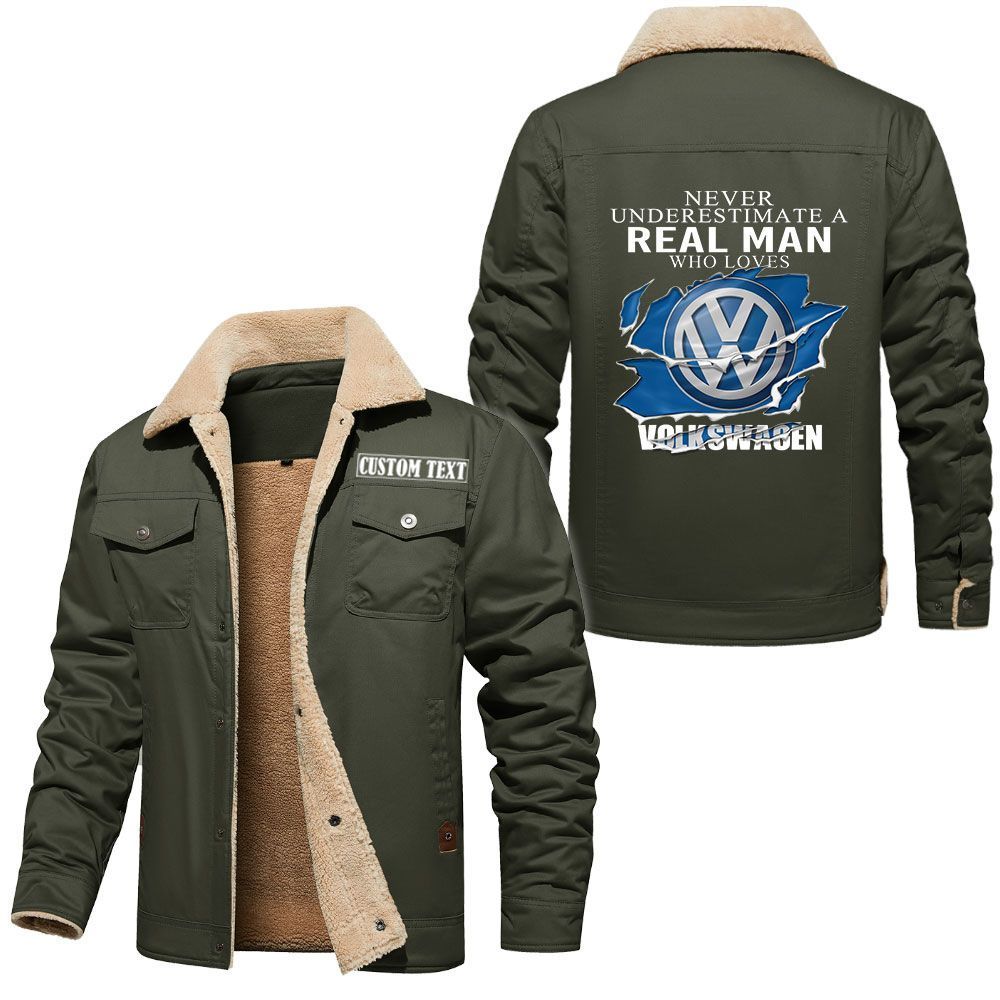 Volkswagen Group Logo Custom Name Cargo Fleece Lined Cotton Jacket A Real Man Who Loves Personalized Outerwear