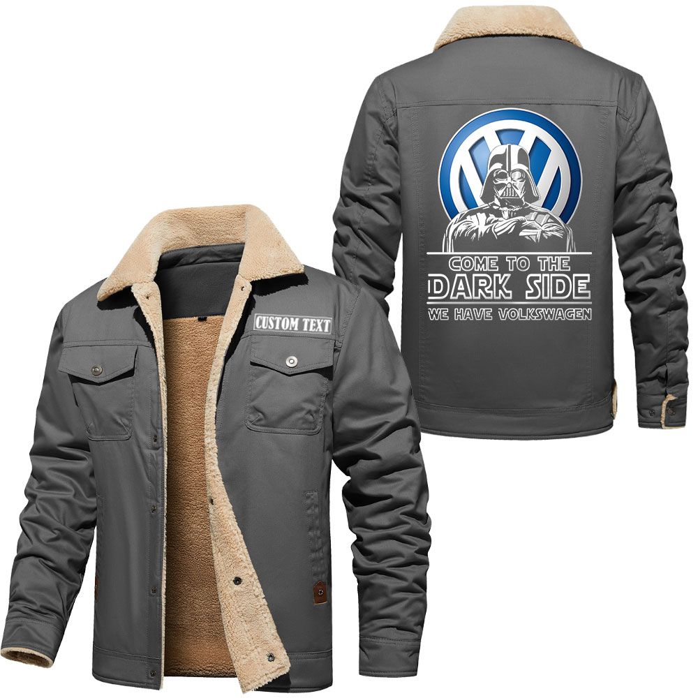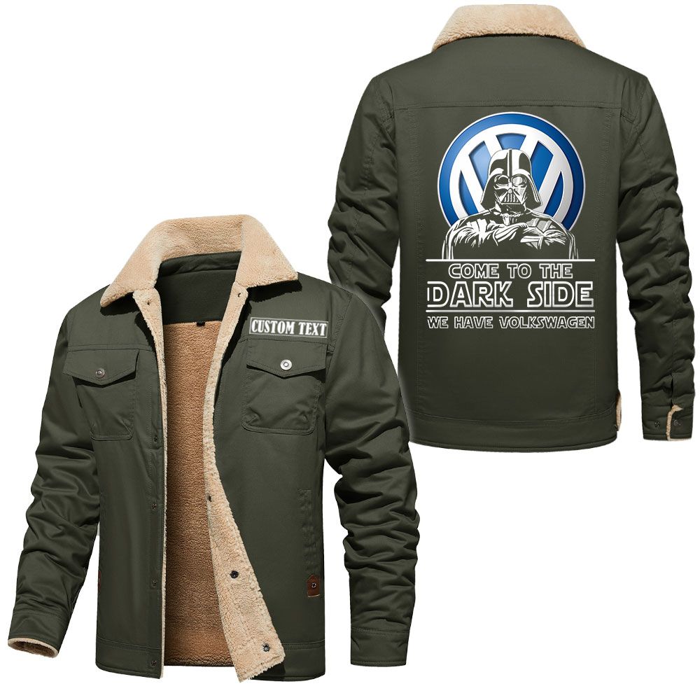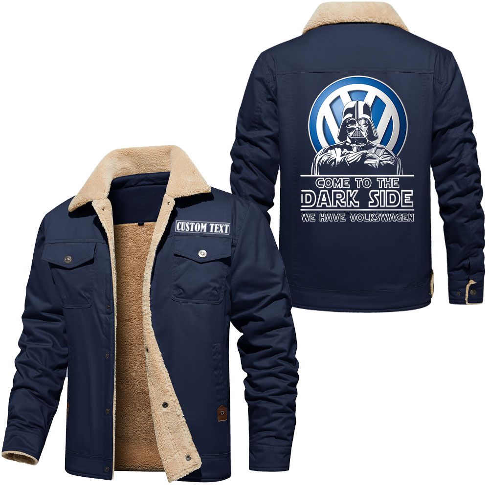 Volkswagen Group Logo Custom Name Cargo Fleece Lined Cotton Jacket Personalized Outerwear with Dark Side Star Wars Design