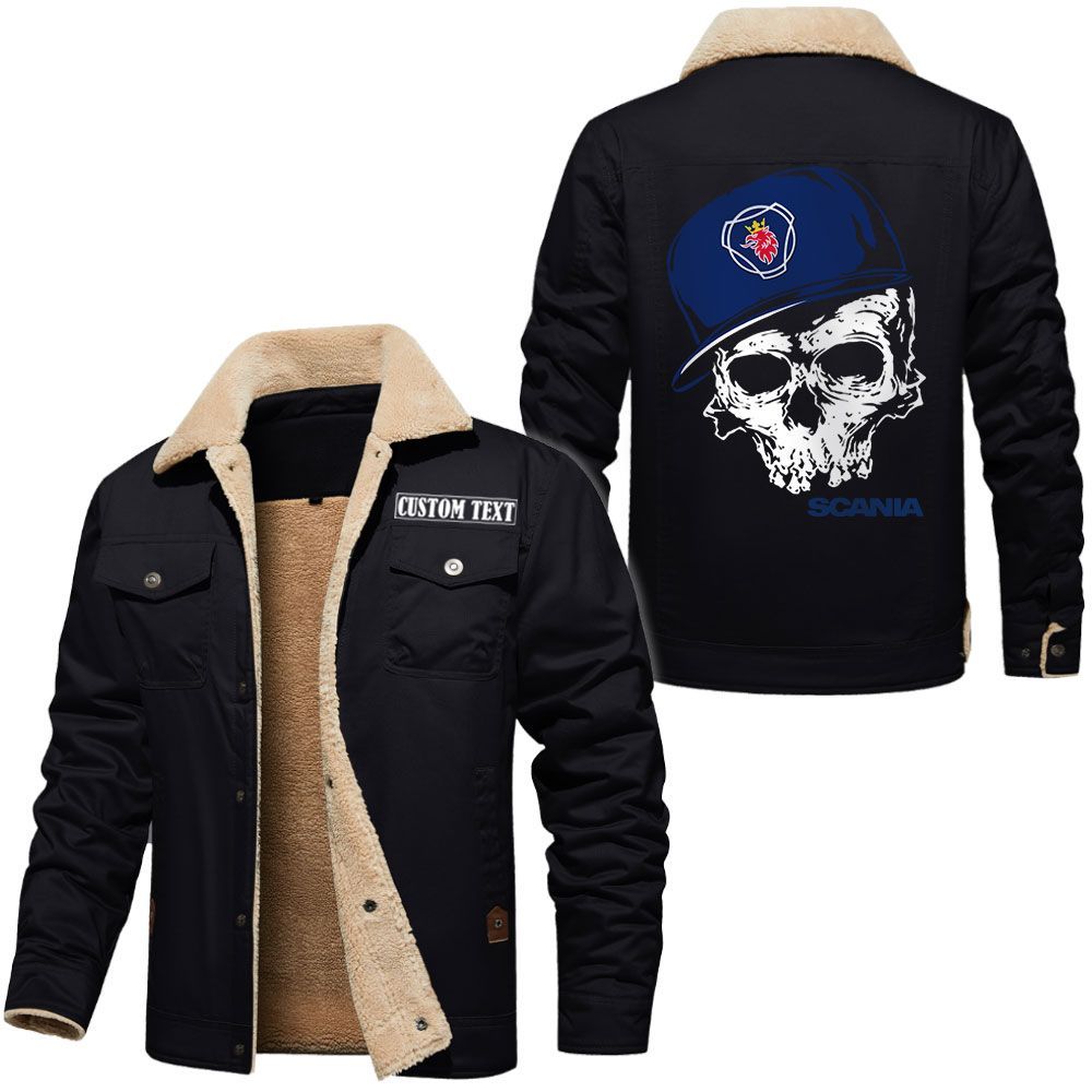 Volkswagen Group Logo Custom Name Cargo Fleece Lined Cotton Jacket Personalized Outerwear with Punisher Skull Design