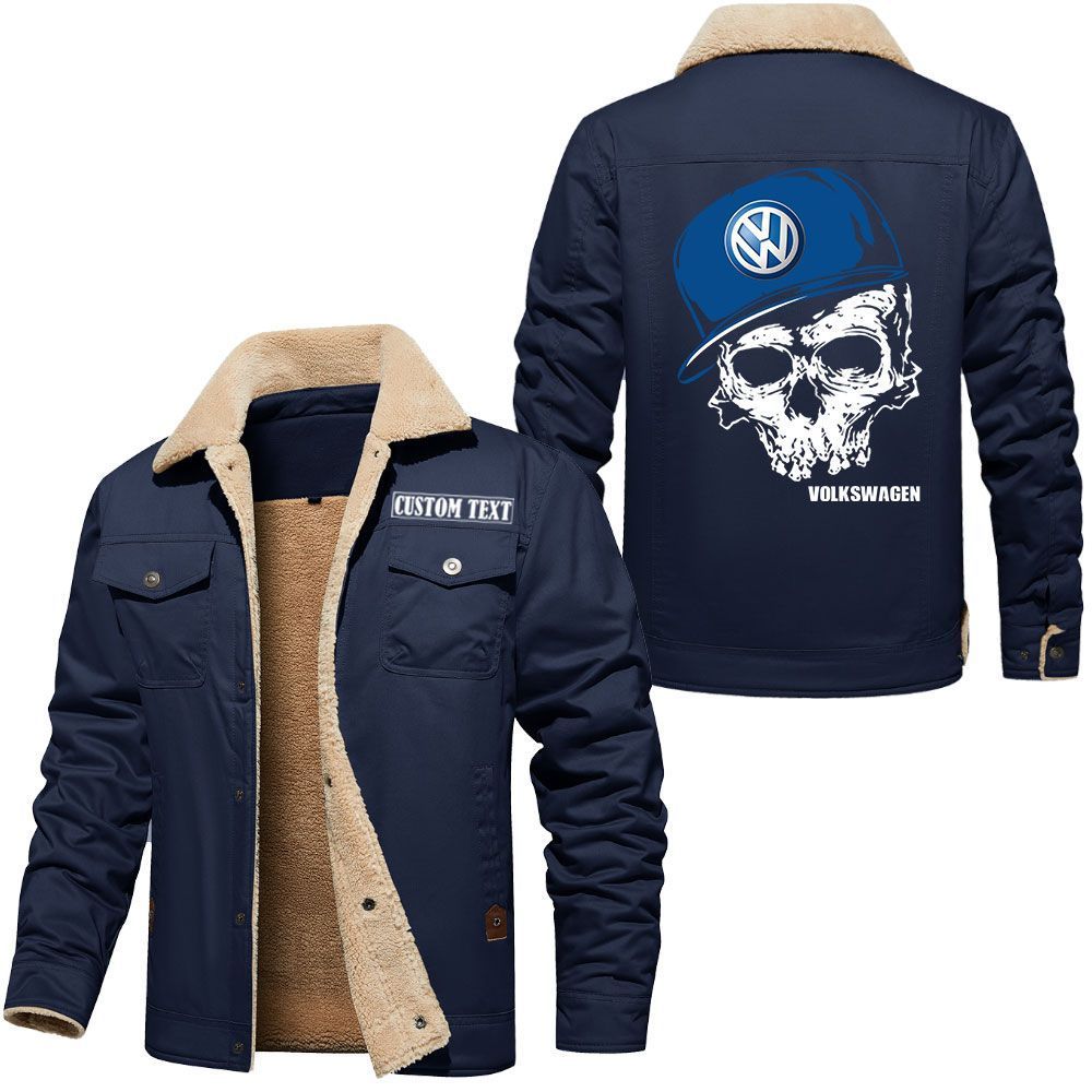 Volkswagen Group Logo Custom Name Cargo Fleece Lined Cotton Jacket Personalized Outerwear with Skull Design