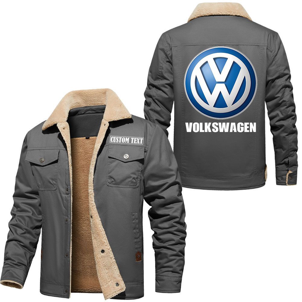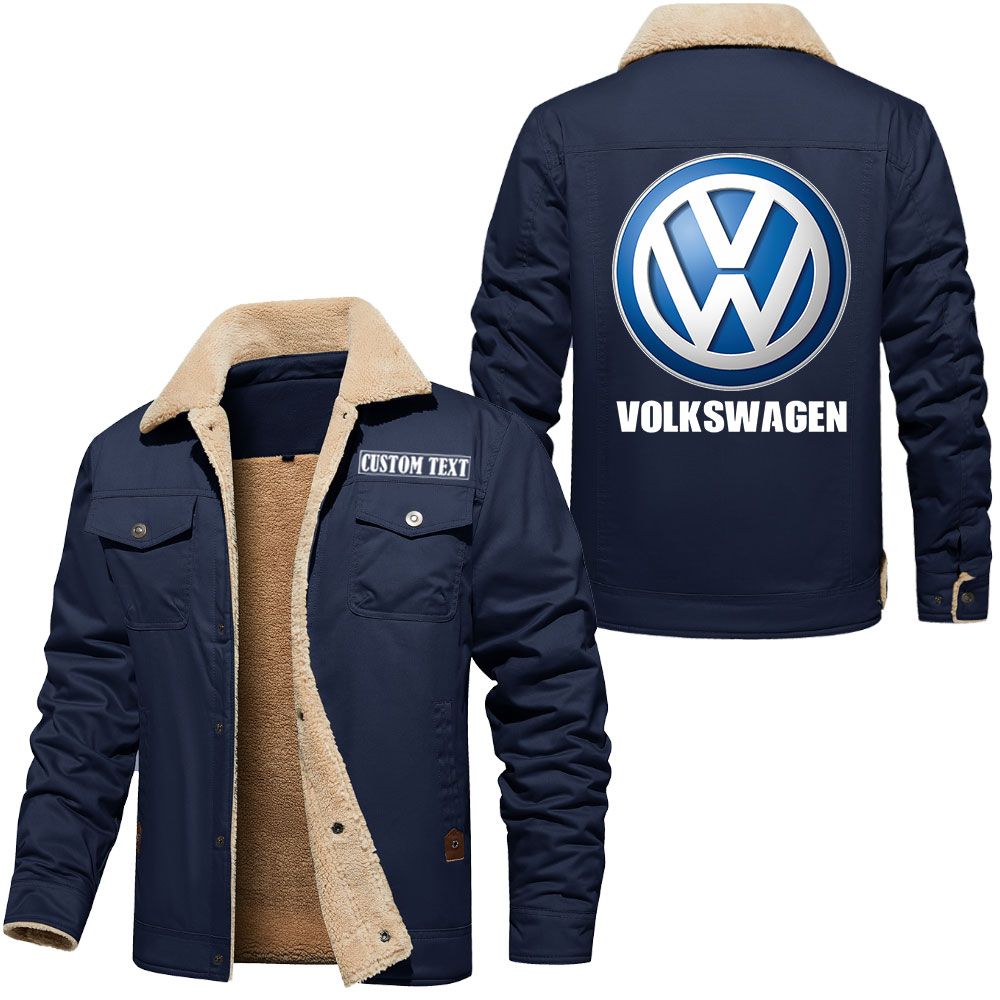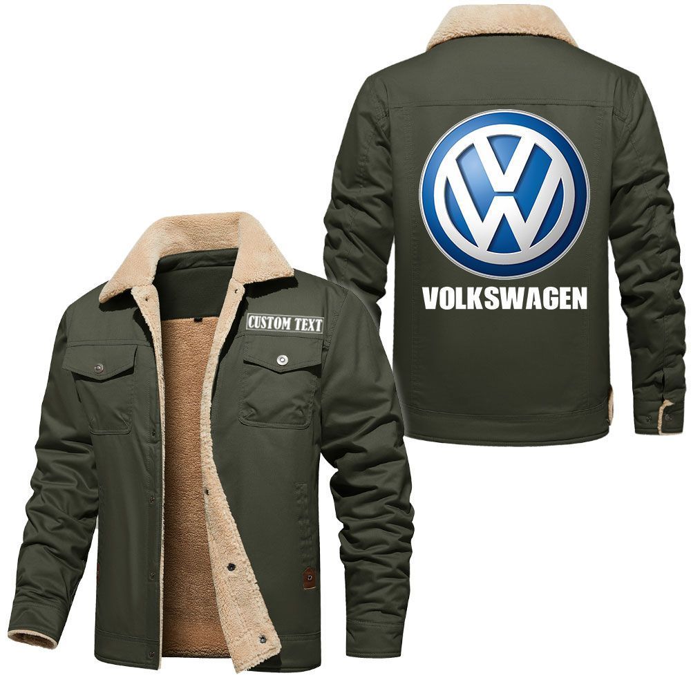 Volkswagen Group Logo Custom Name Cargo Fleece Lined Cotton Jacket Stylish Warm Personalized Outerwear