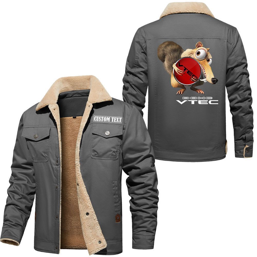 VTEC Logo Custom Name Cargo Fleece Lined Cotton Jacket Scrat Ice Age Design Personalized Outerwear
