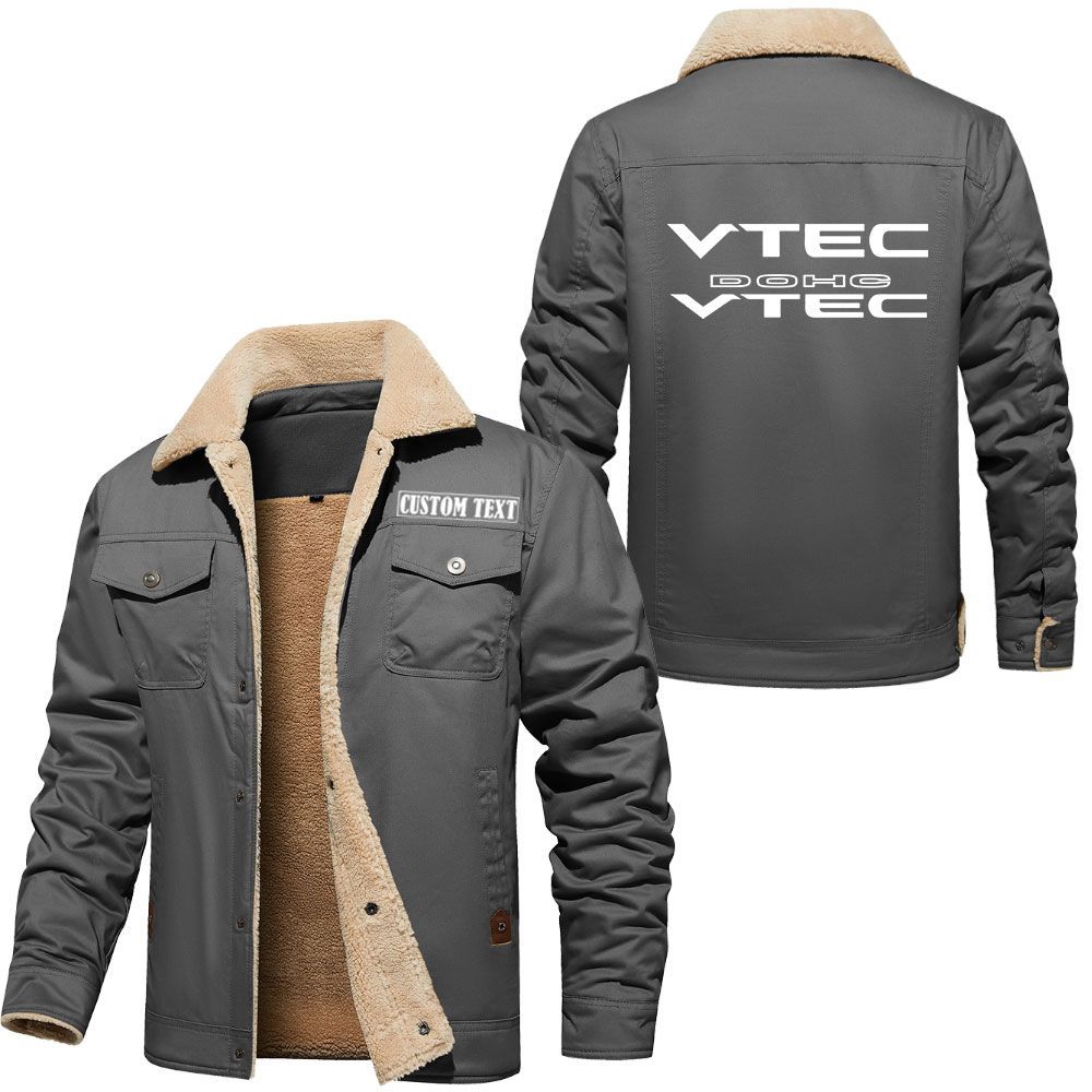 VTEC Logo Custom Name Cargo Fleece Lined Cotton Jacket Stylish Warm Personalized Outerwear