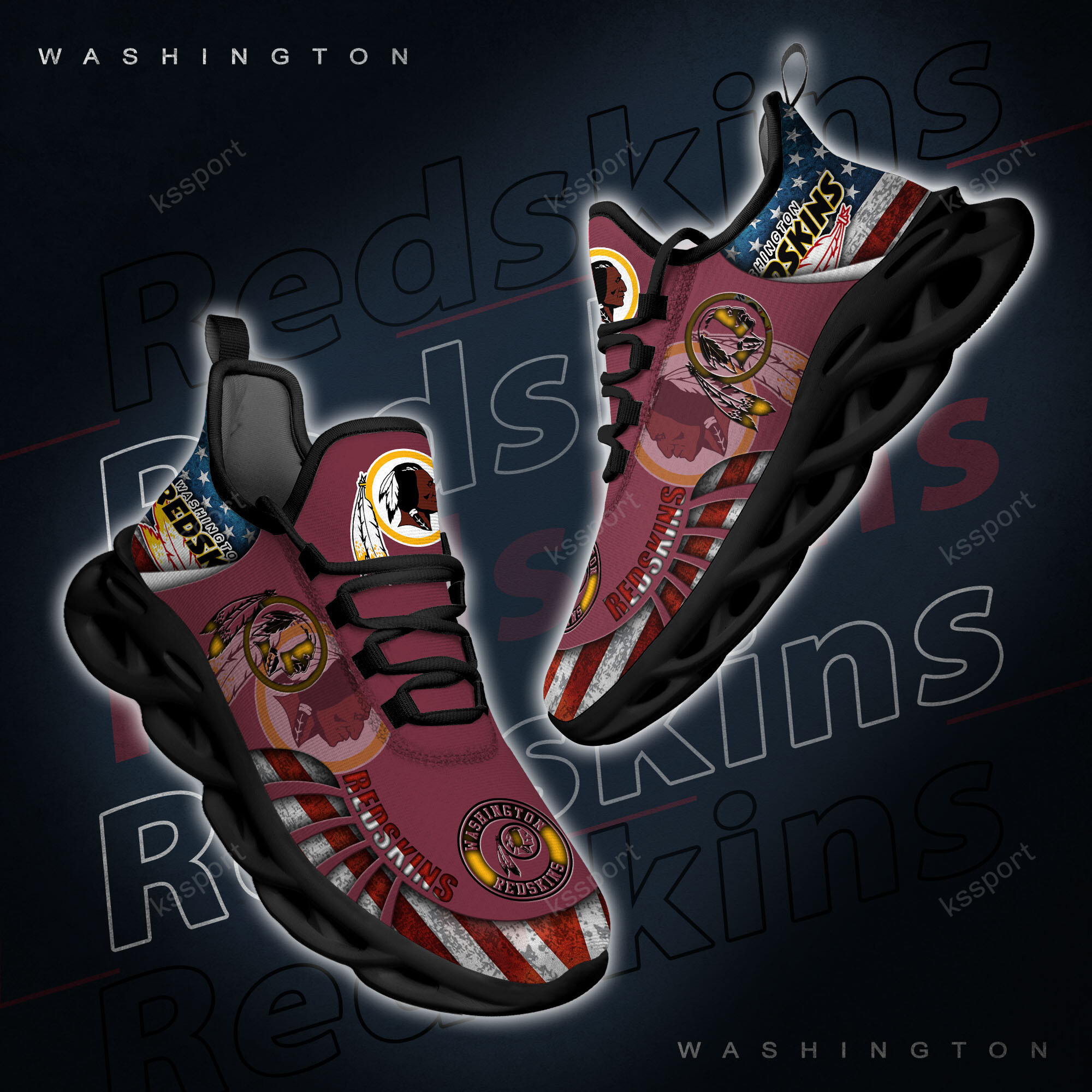 Washington Redskins NFL Max Soul Shoes Sneakers Printed White And Black Sole For Men And Women
