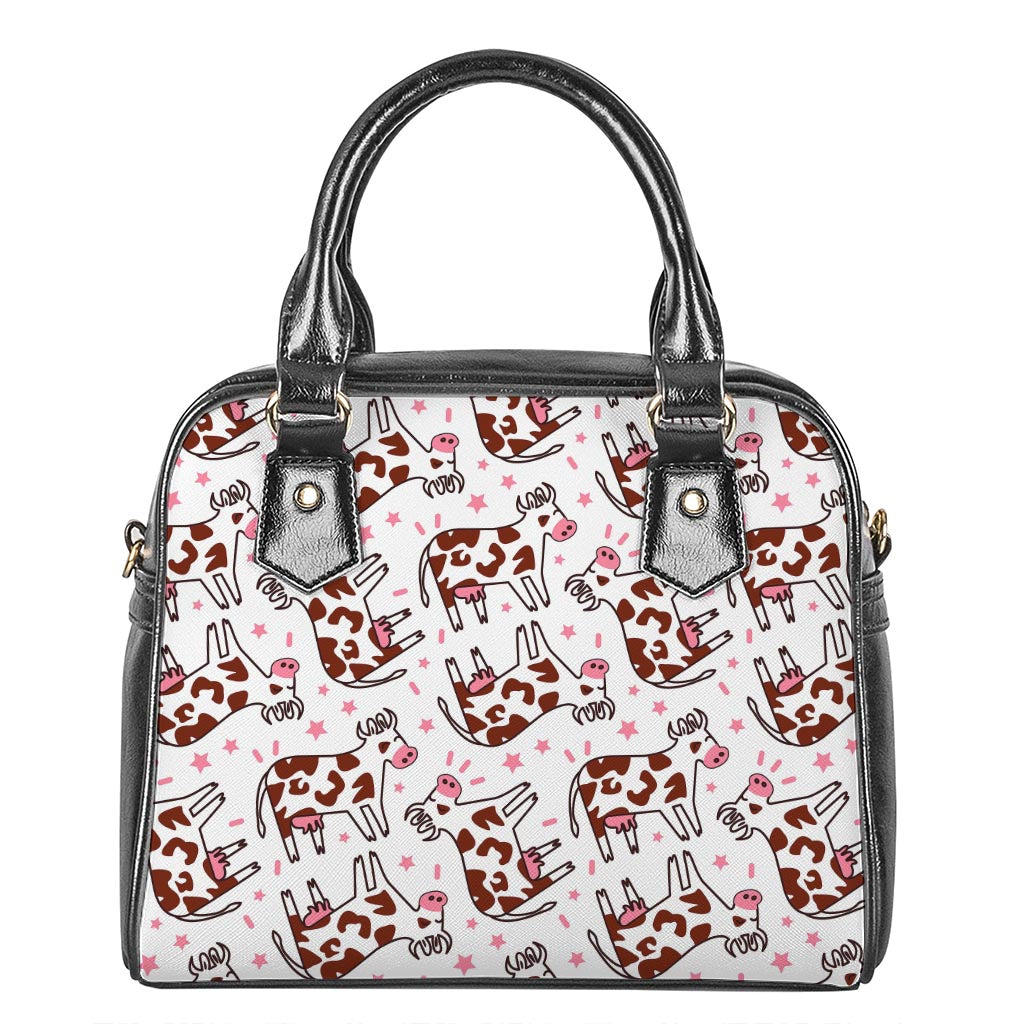Watercolor Cartoon Cow Pattern Print Shoulder Handbag