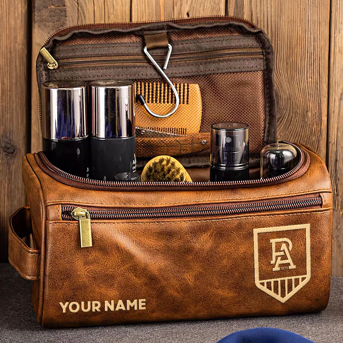 West Coast Eagles AFL Exclusive Logo Personalized Leather Toiletry Bag, Fishing Leather Toiletry Bag