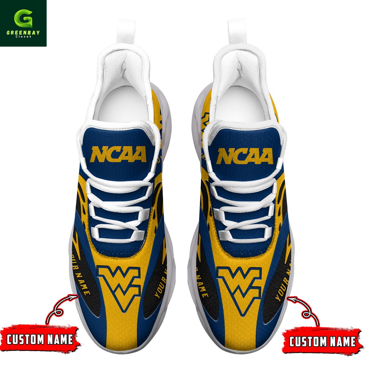 West Virginia Mountaineers Max Soul Shoes Sneakers Printed White And Black Sole For Men And Women