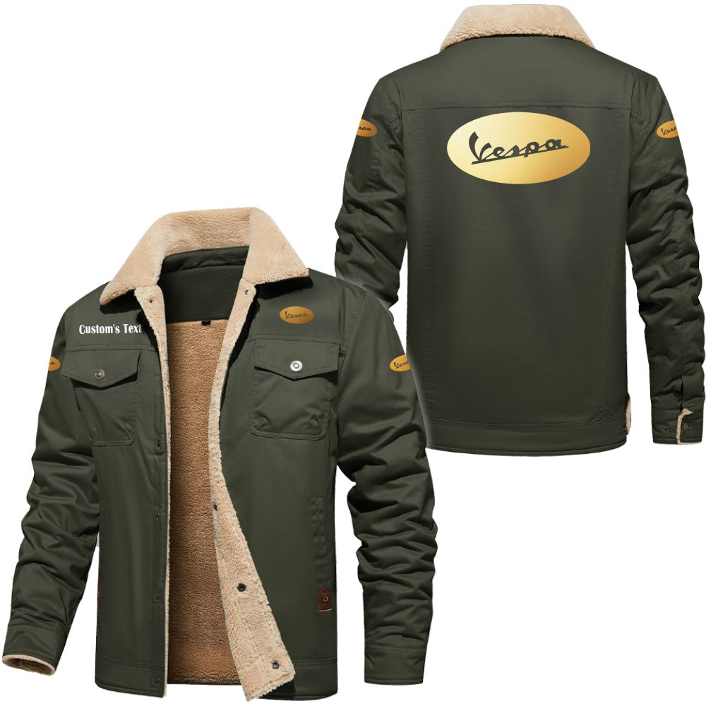 Wester Star Golden Logo Custom Cargo Fleece Lined Cotton Jacket Army Green