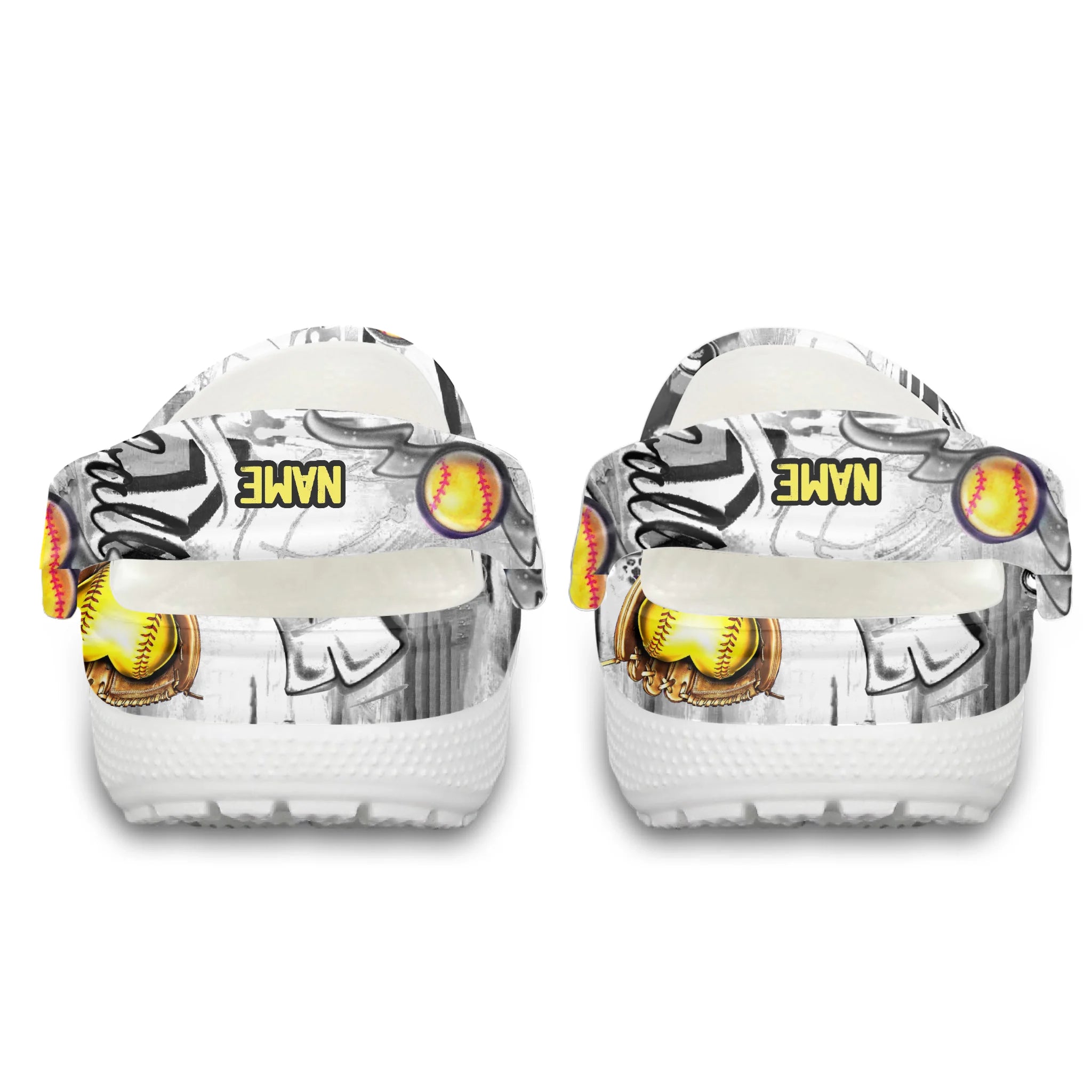 White Graffiti Softball Sport Custom Crocs And Clogs Shoes Printed For Men Women And Kids