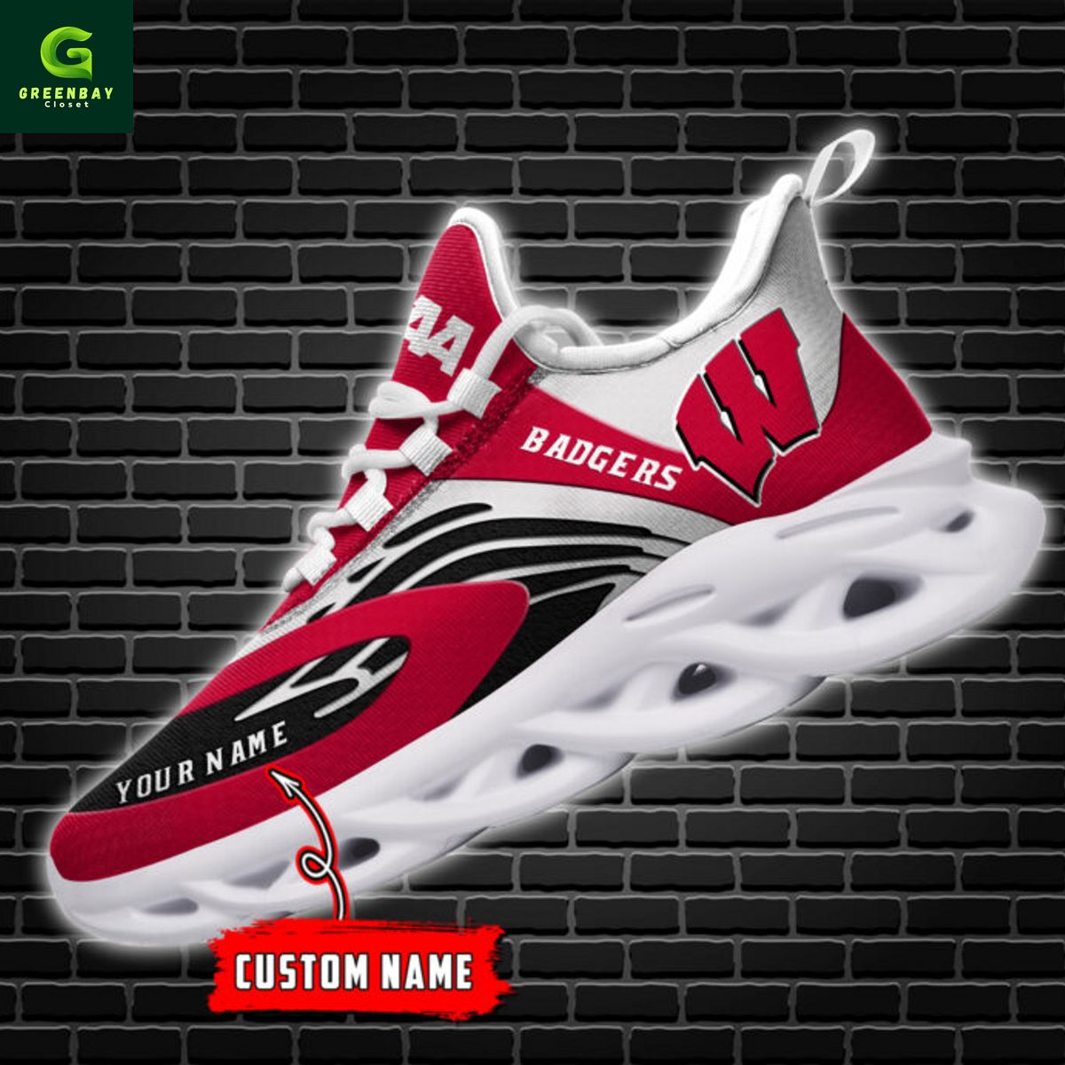 Wisconsin Badgers Max Soul Shoes Sneakers Printed White And Black Sole For Men And Women