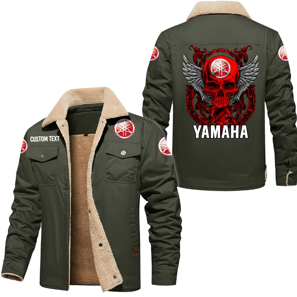 Yamaha Custom Name Skull Design Cargo Fleece Lined Cotton Jacket
