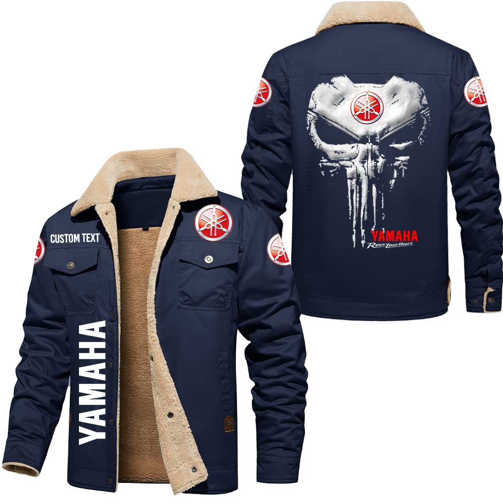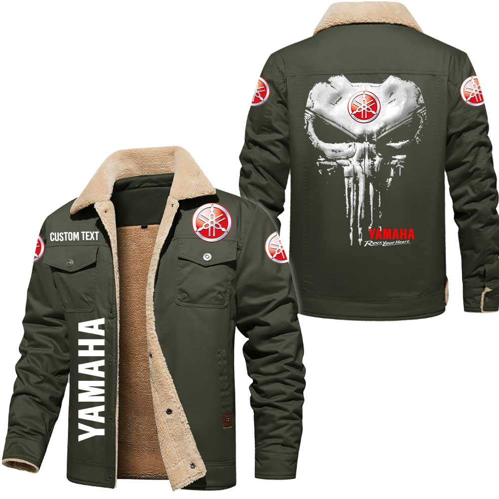 Yamaha Logo Skull Design Custom Text Cargo Fleece Lined Cotton Jacket