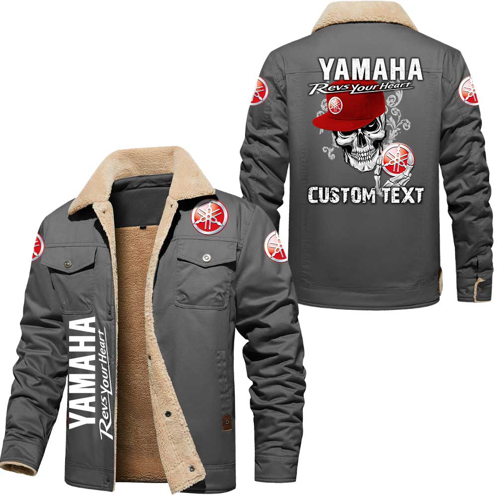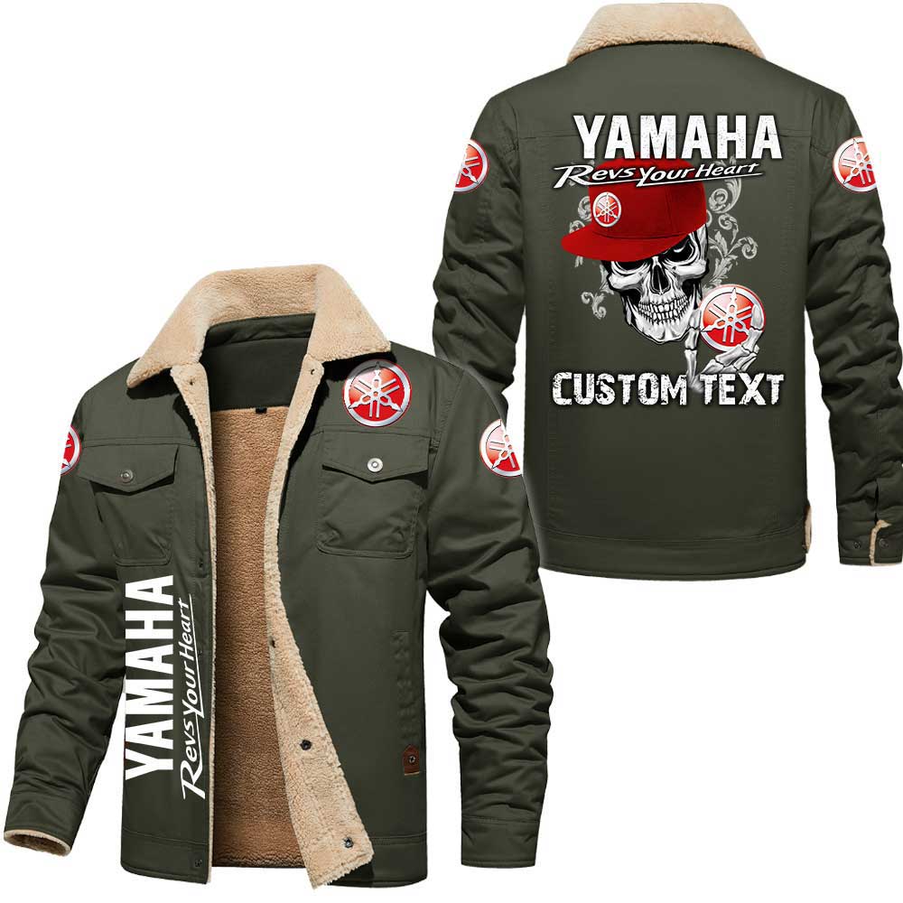 Yamaha Revs Your Heart Skull Custom Name Cargo Fleece Lined Cotton Jacket