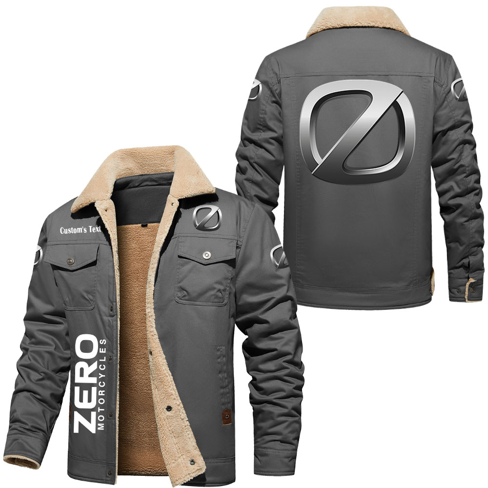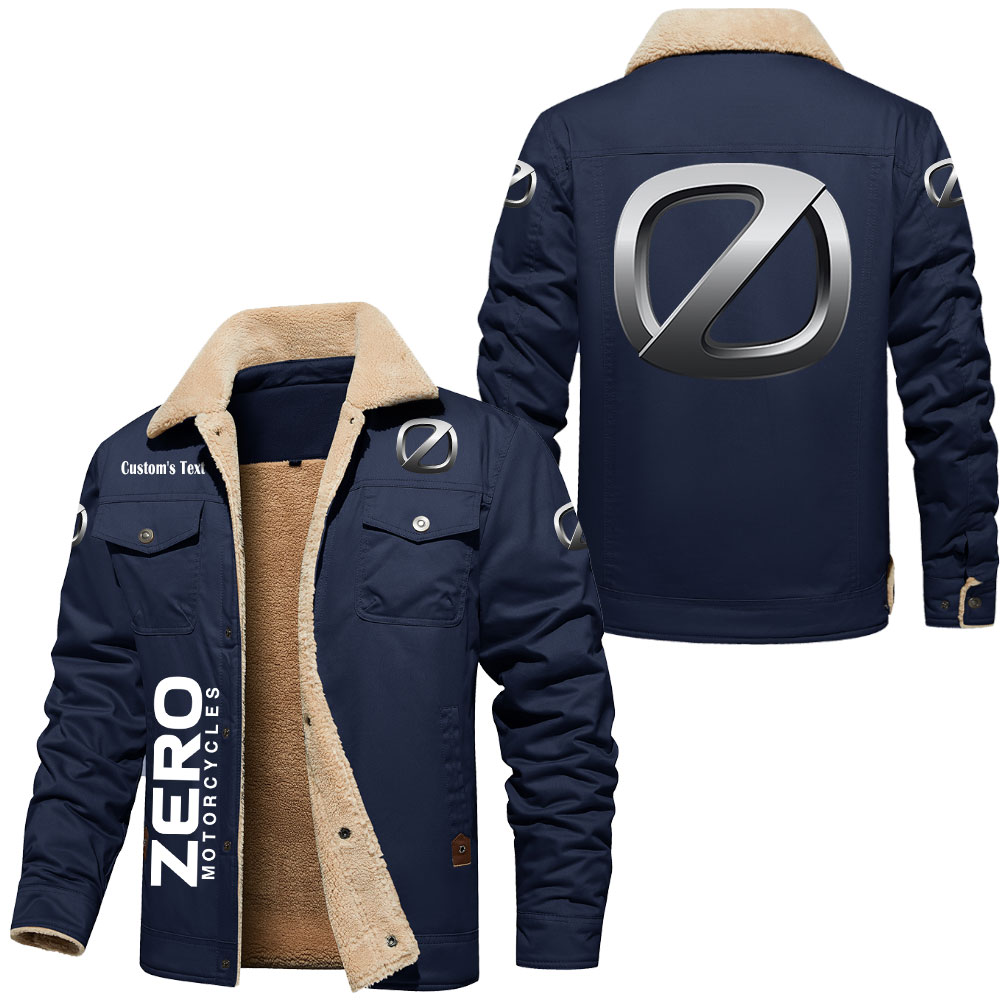 Zero Motorcycles Logo Custom Text Cargo Fleece Lined Cotton Jacket